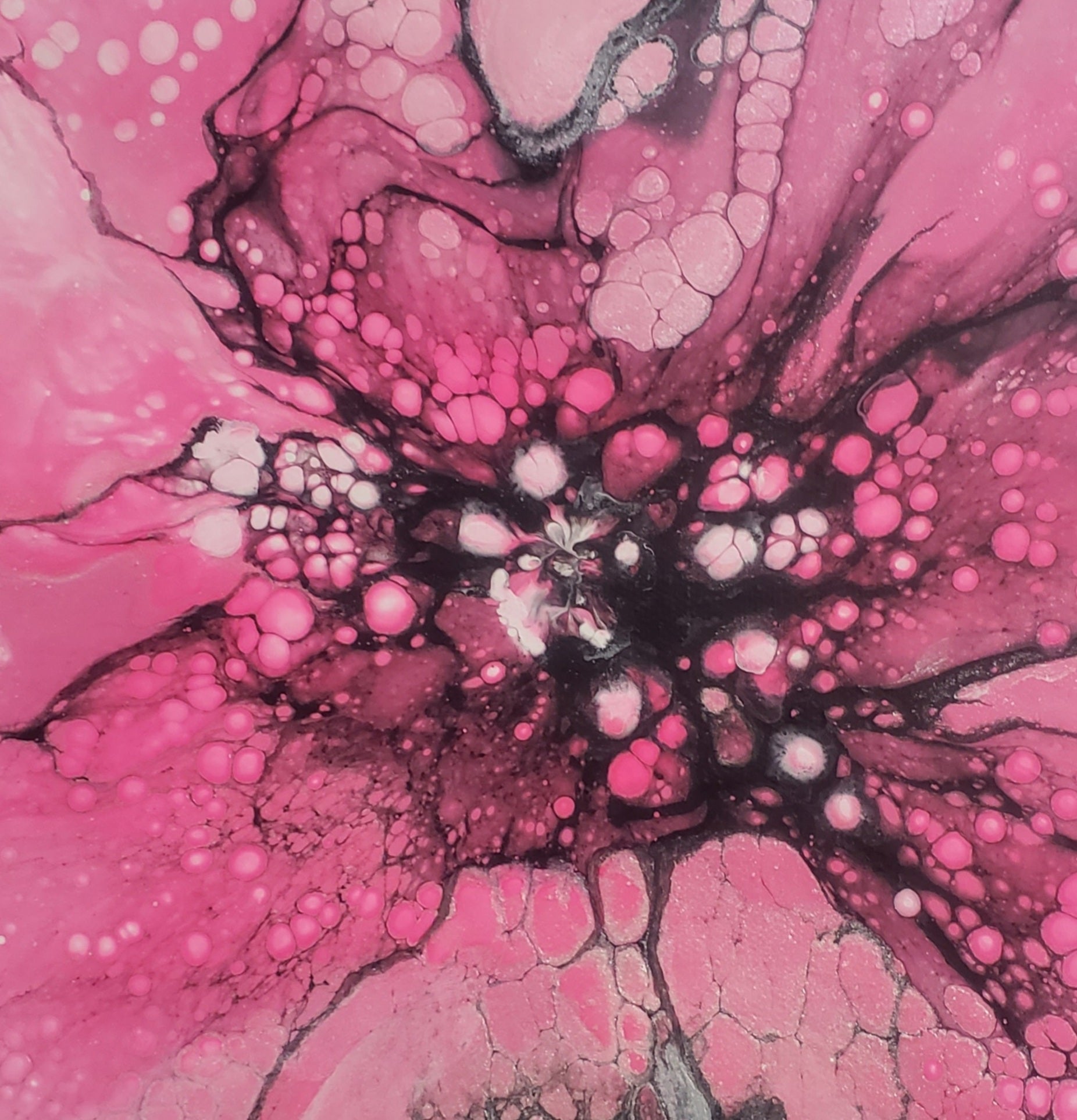 Beautiful cells created by a chemical reaction from products used in pink tones 10x10" Resined