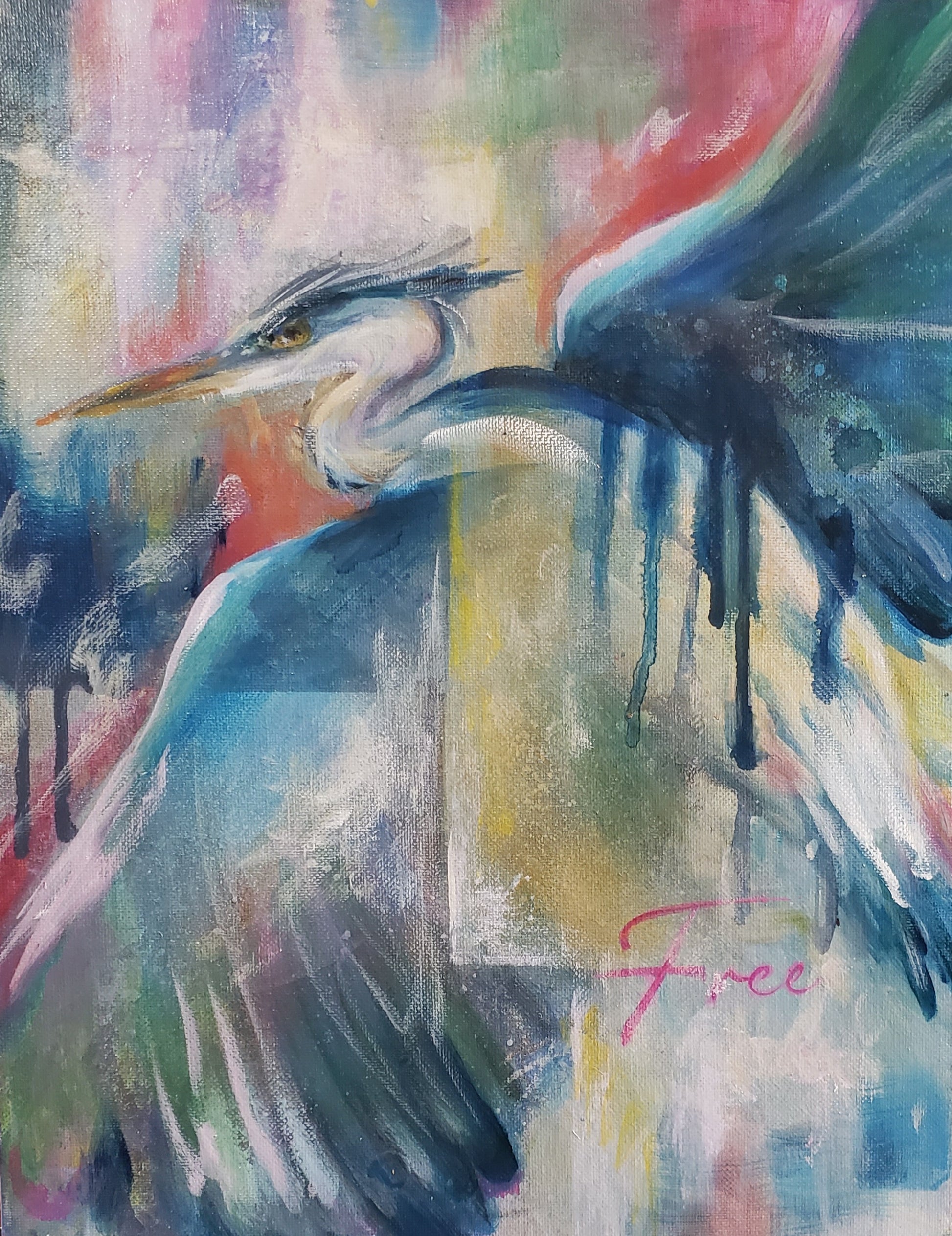 "FREE FLO" Abstract Heron Art | Original Oil Painting 11x14"