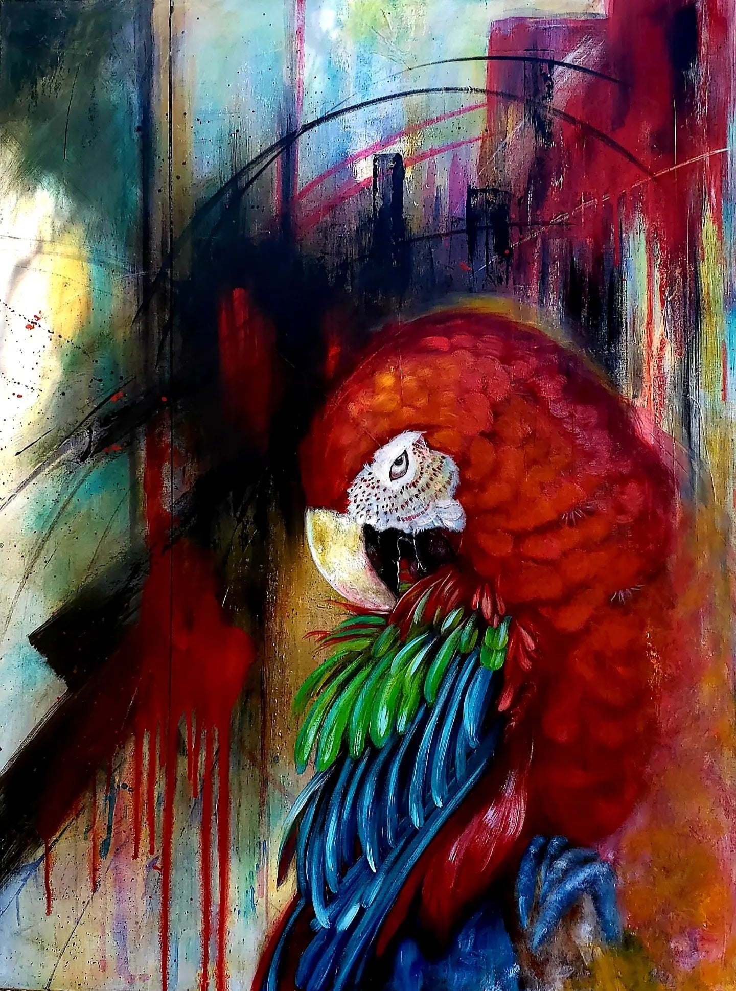 ABSTRACT REALISM ORIGINAL CUSTOM MIXED MEDIA OIL PAINTING 36X48X1.5" CANVAS VIBRANT COLORS