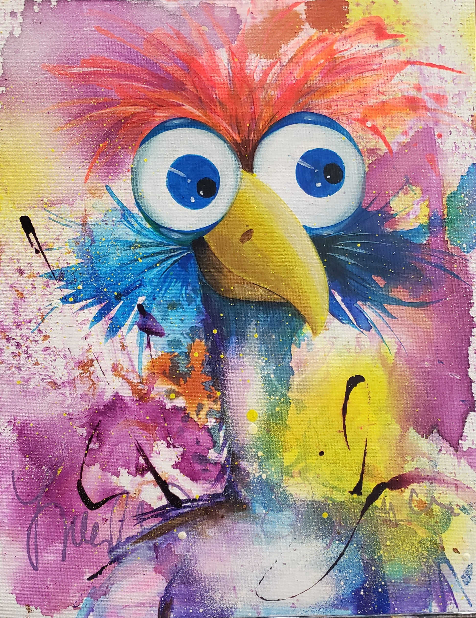 This painting features a cool cartoon character in happy colors on an 11x14-inch canvas panel. It's perfect for a young one's room as wall decor.