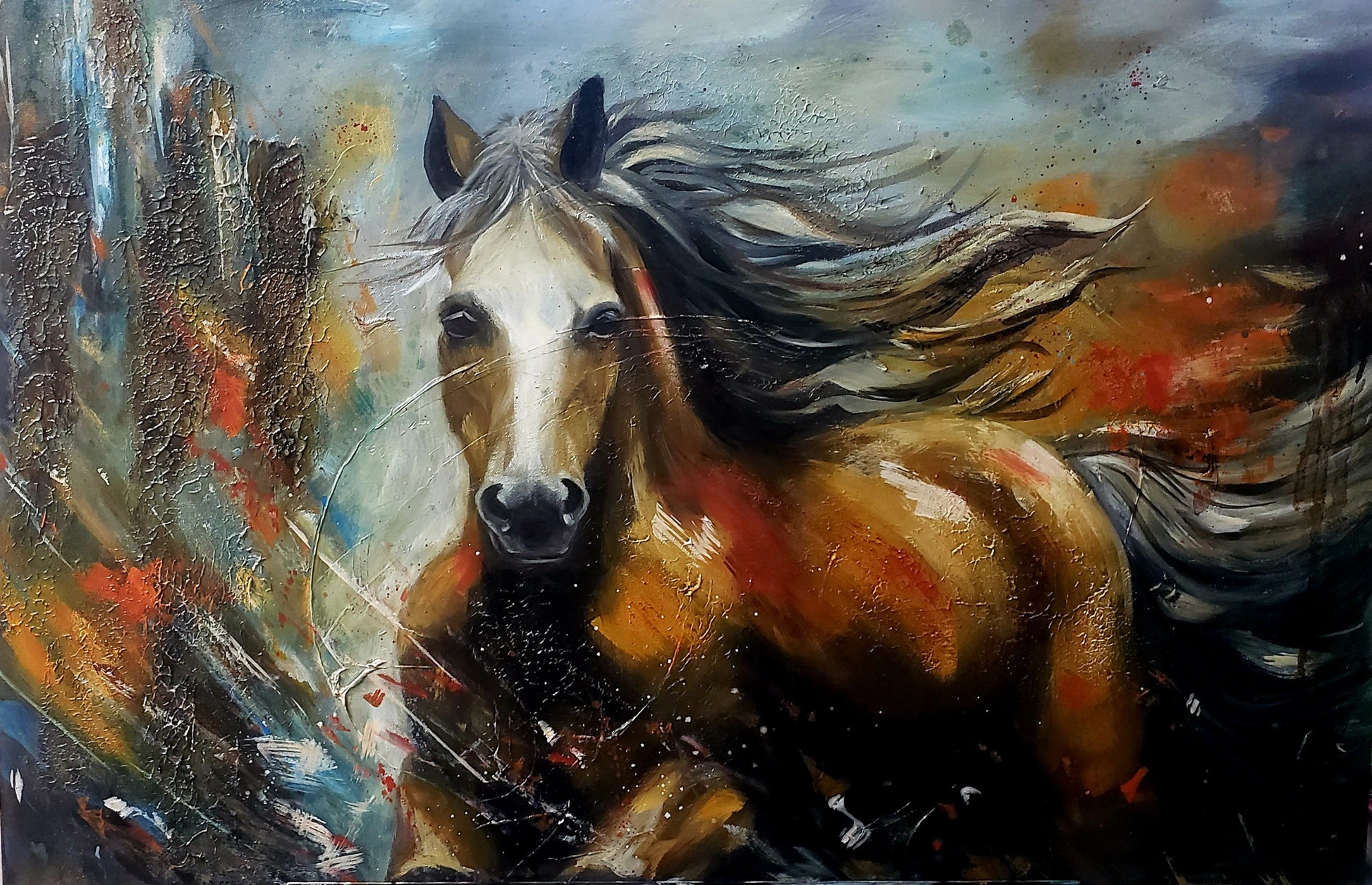 ABSTRACT REALISM ORIGINAL CUSTOM MIXED MEDIA OIL PAINTING 24X36X1.5" CANVAS