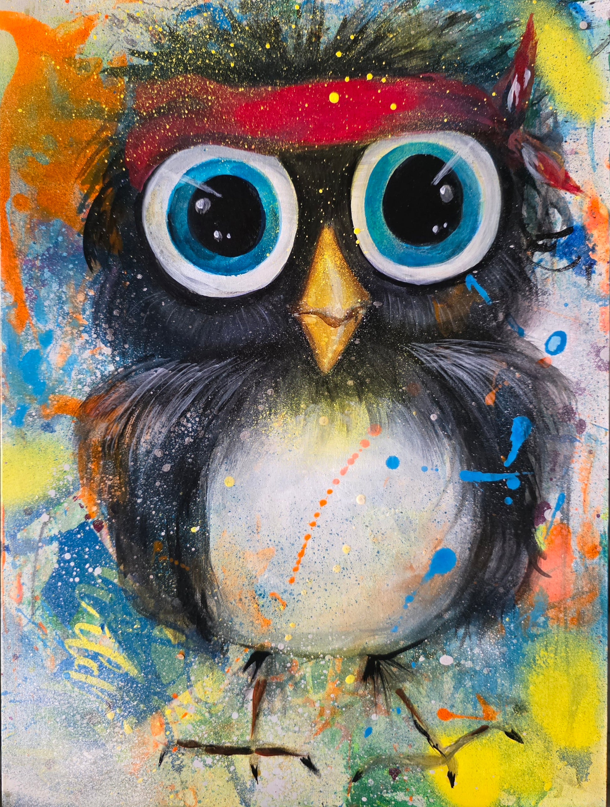 Abstract realistic painting features a little tough fella cartoon style character in bright colors on an 12x16" inch canvas panel. It's perfect for a child's room as wall decor. an orignial painting